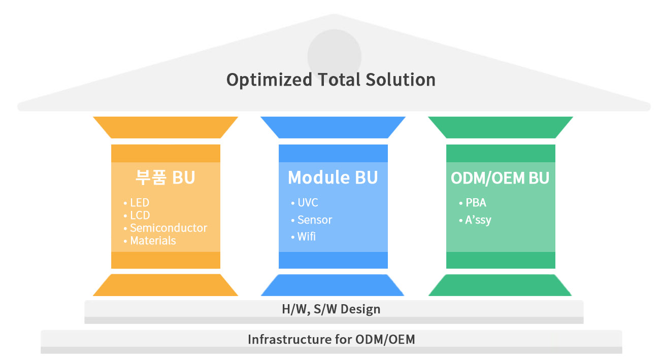 • 20년 이상의 개발경험, 탁월한 기술력, 안정적 품질관리 ,국내외 본지사 협력시스템으로 고객만족 실현. • SMT 제조라인 내재화 , 부품 경쟁력(반도체 & Display)과 H/W & S/W 개발역량 확보로 부품부터 완제품(OEM/ODM) 까지 수직계열화하여 고객이 원하는 최적의 SOLUTION을 제공합니다. (제조 인프라 내재화 : 코넥스온텍 계열사)