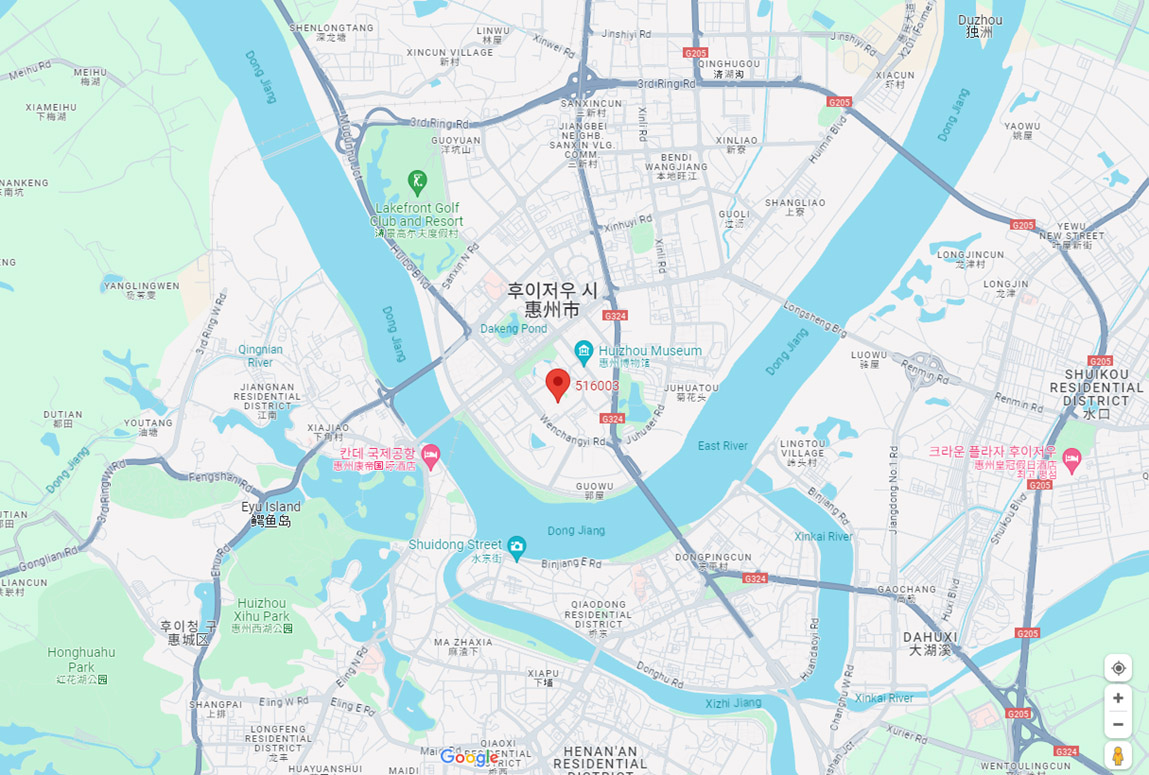 주소 : Room 1002, Building B, Twin Star International Business Building, No.16 Jiangbei Community, Huizhou City, CHINA (Postal code:516003)